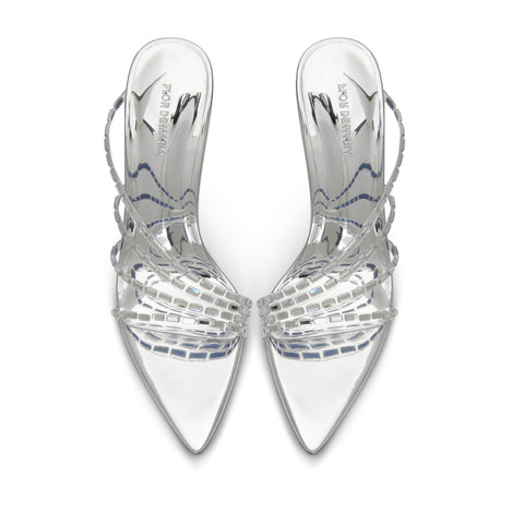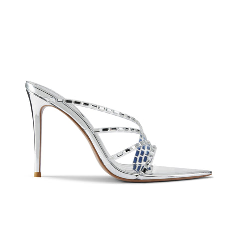 Effortless glamour meets modern minimalism in TAYLOR, a radiant crystal mule that feels like fine jewelry for the feet. The sleek silhouette is adorned with rows of faceted rectangular crystals that trace the arch, catching the light from every angle. Designed to elegantly hug the foot, she creates the illusion of walking on air, graceful, polished, and endlessly captivating.